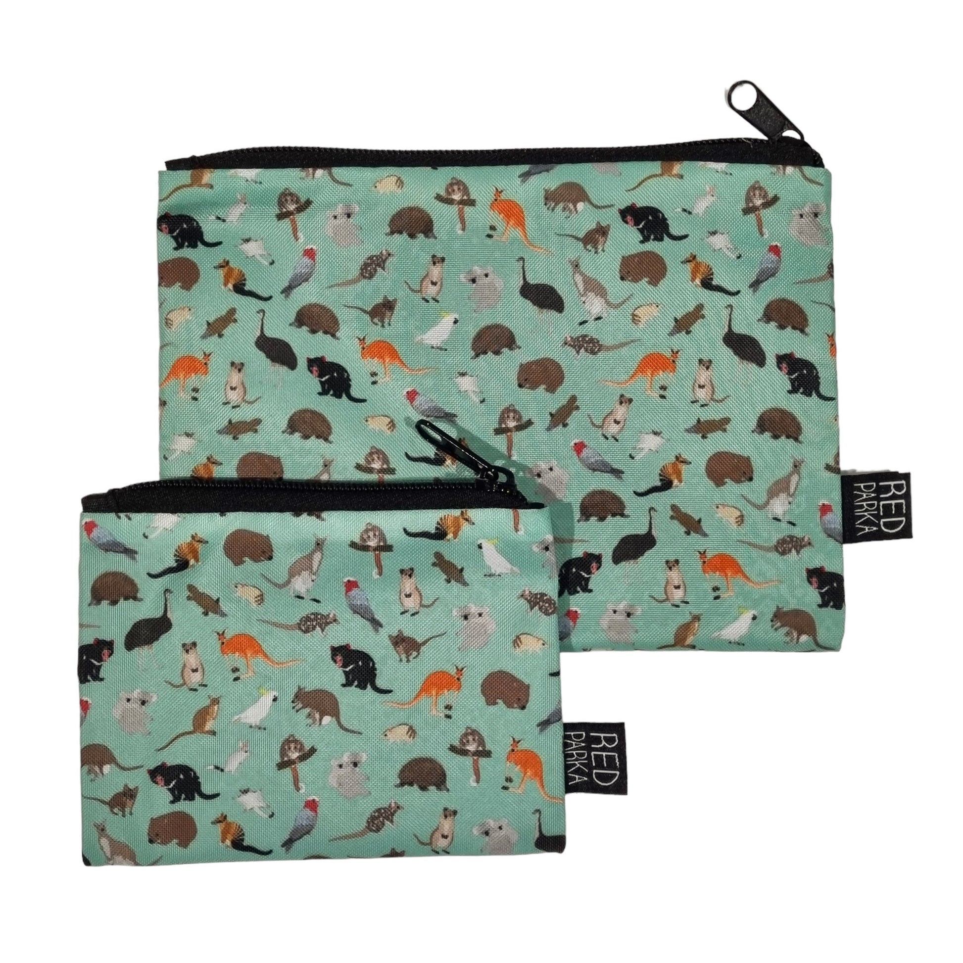 Made with recycled polyester sourced from recycled bottles and post-consumer waste, these pouches feature a mob of Australian Animals designed by Jen. Great as a gift for that person who has everything!