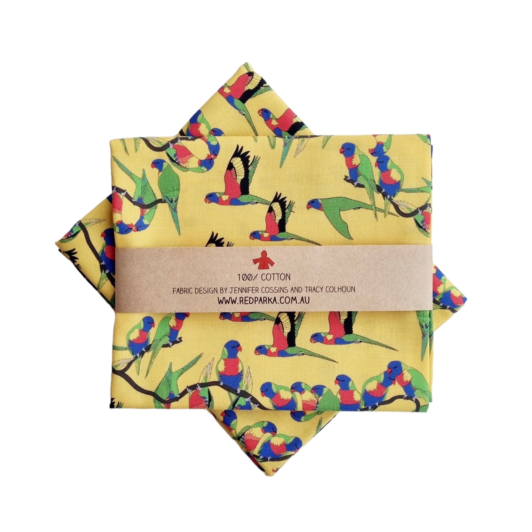 Jen's Lorikeet illustrations gather on this 100% cotton fabric.